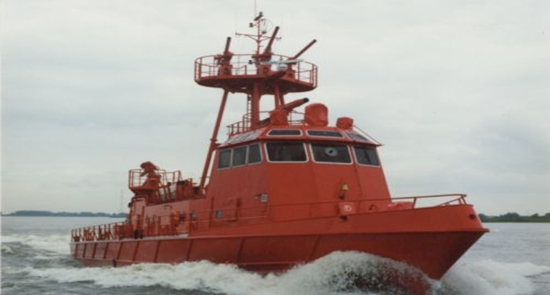 Fire fighting boat.